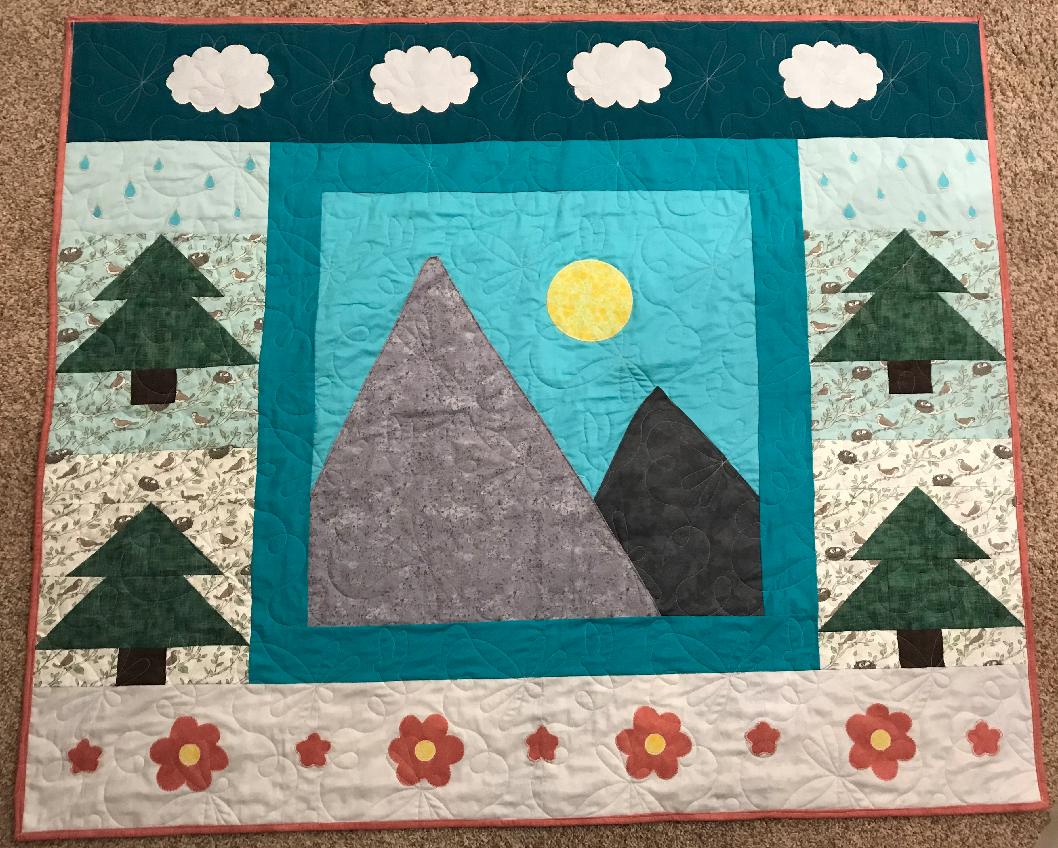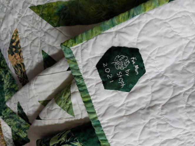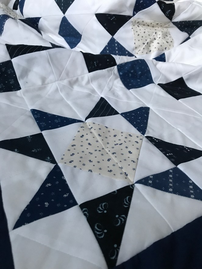 But here we are. It’s finished. Mistakes were made and lessons were learned. I will definitely hand quilt again, but my technique will differ greatly.