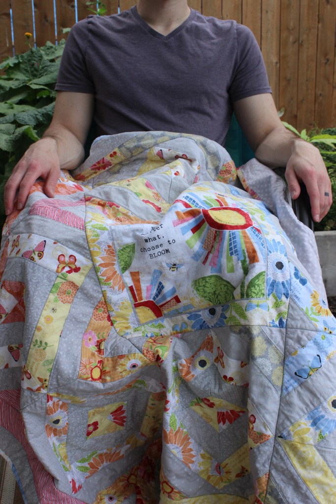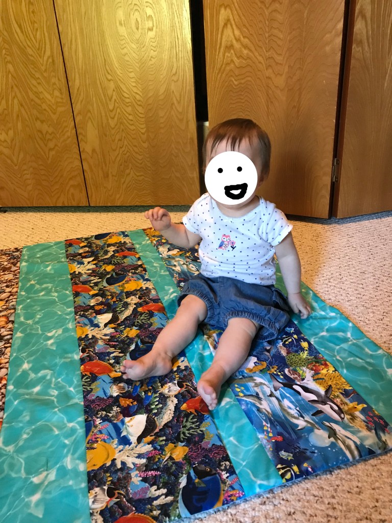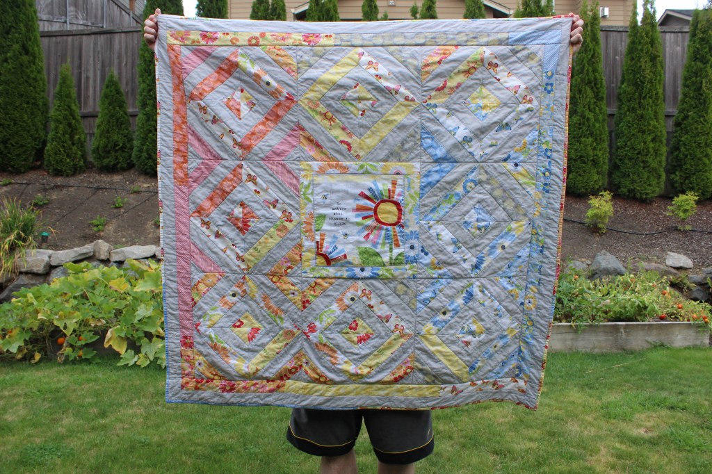 Honestly, thought I’m not fond of the quilt, it was really fun to make and it gave my husband and I something to do together that day. A lot of people get a nice quilt and they don’t want to think about letting their drooling baby anywhere near it, so I hope I hope that the quality of this quilt allows the family to feel like they can really use it.
