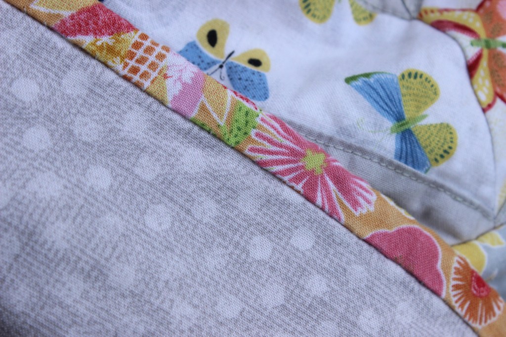 I had been inspired by a friend to try my hand at hand quilting so I thought this would be a good time to try it out. It took me a while to figure out what I was doing, and I would often put it aside for weeks or months at a time whenever I had an excuse to (or when it felt daunting). Lucky for me, I was fortunate enough to have the “help” of a toddler who went ahead and cut several random stitches. This allowed me to put off finishing it for even longer because I wasn’t sure how I was going to fix that problem.