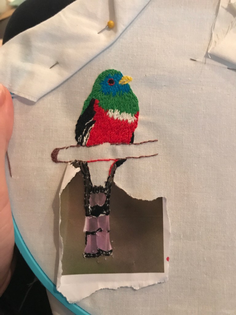 For anyone wondering: Sometimes I will draw something out if I want to do hand embroidery, but I have found that printing off a photograph can be really helpful. I stitch over the top and rip the paper out as I go. I generally take creative liberties with it as needed, but follow the general shape of the paper.