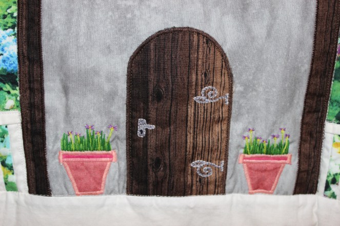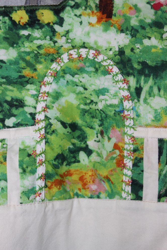 The only place I didn’t use the satin stitch was on the fence. I wanted it to look seamless, as though you could look straight through to the garden behind it, and I thought a satin stitch would take away from it. Also, I didn’t want to risk the fabric warping since the pieces were so small.