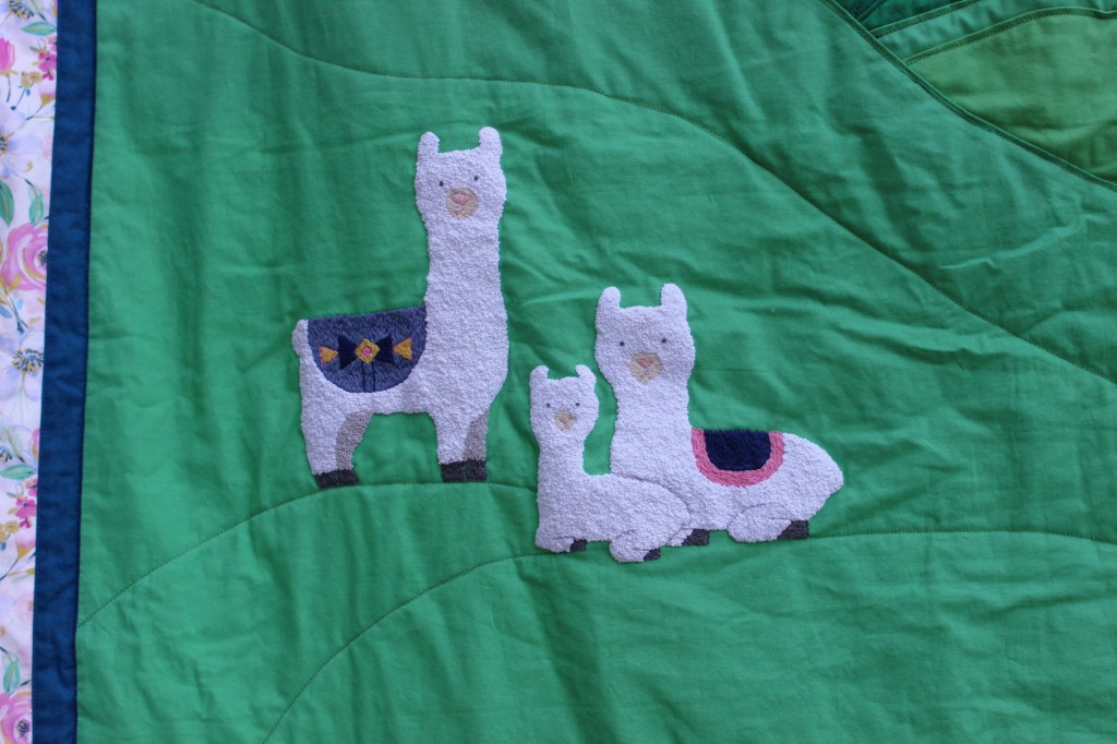 THE POSITIVE PART: For this quilt I was given the following requirements: Twin sized, llamas and mountains, you can do whatever you want with that.