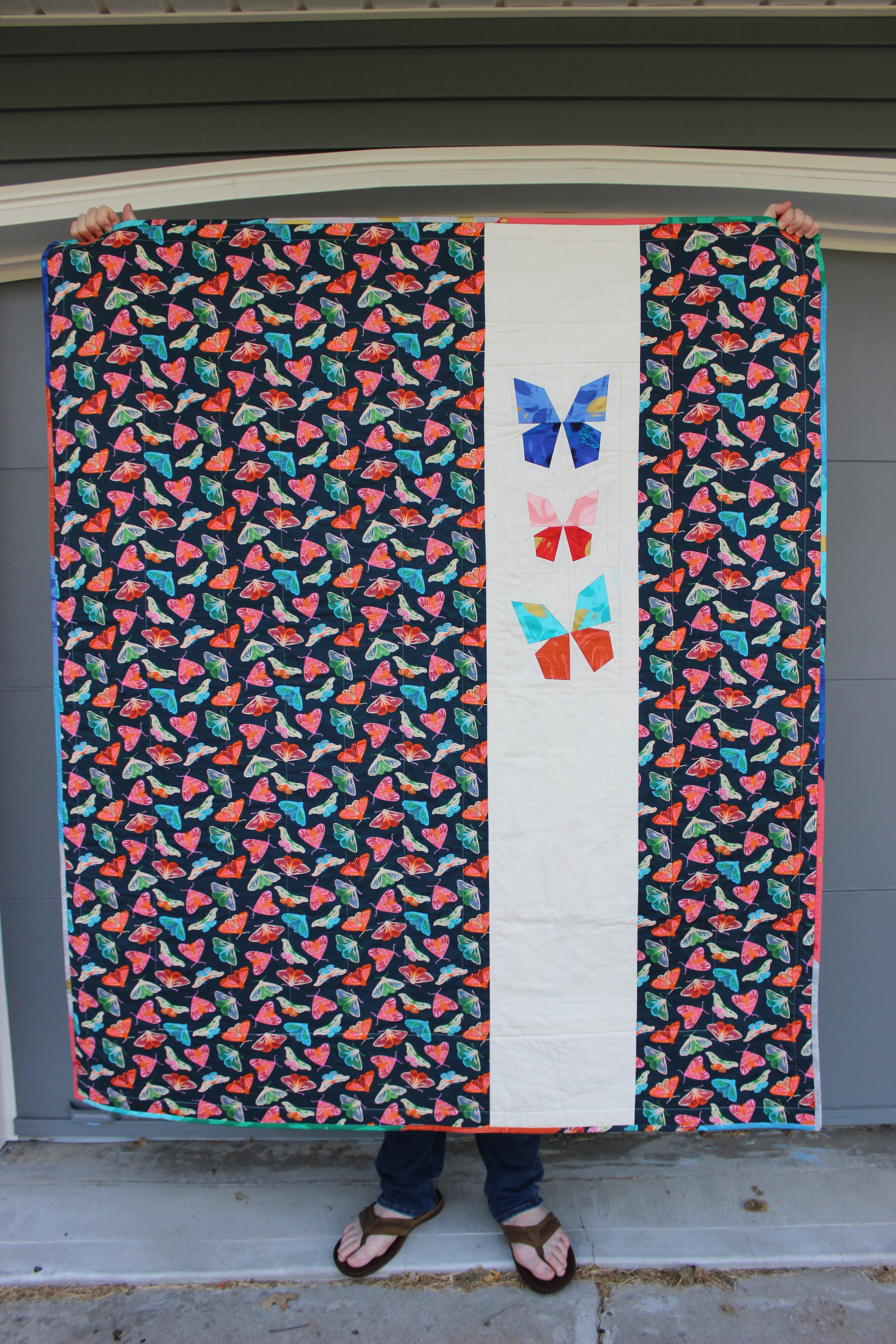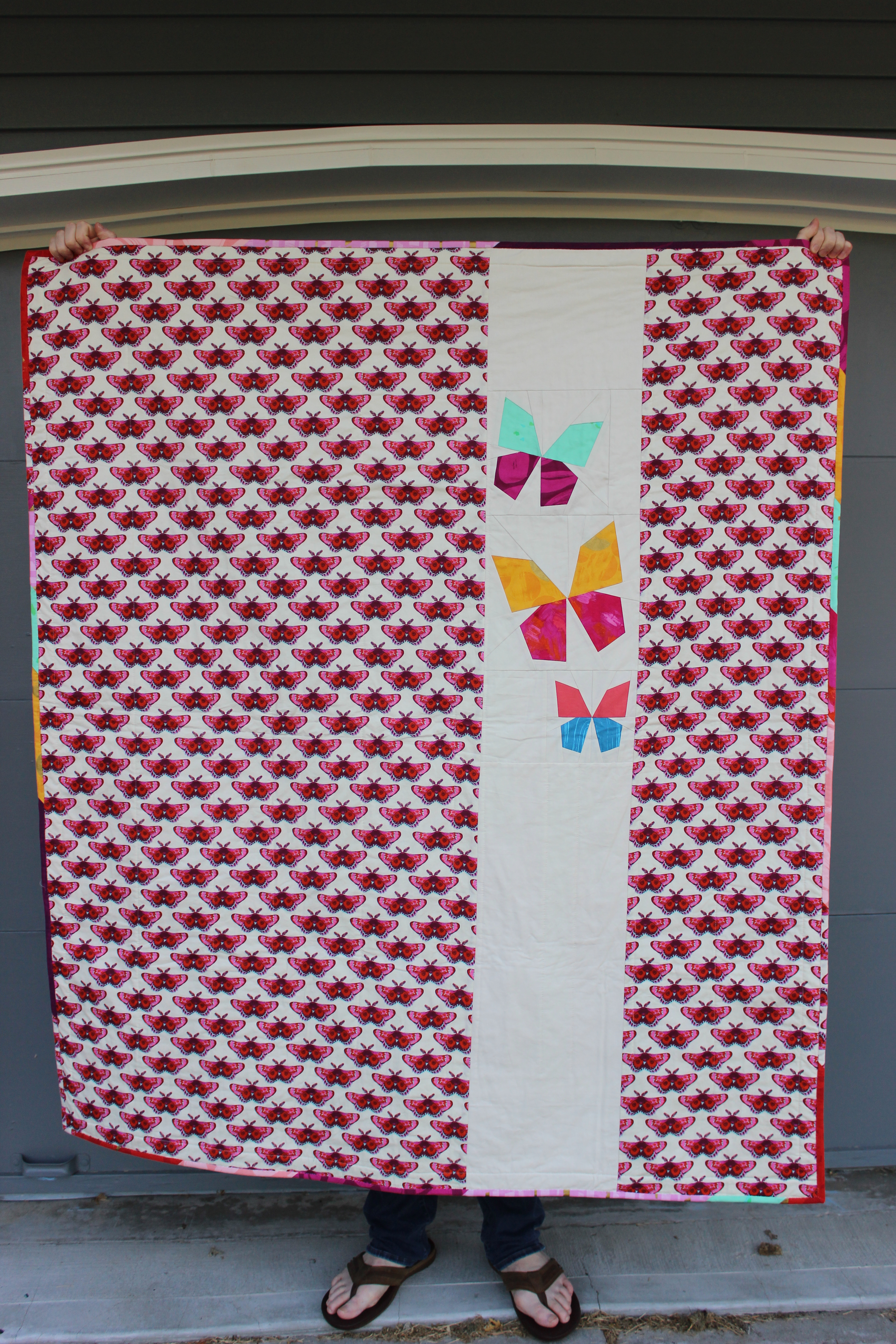 So what do you do with a project you know is bad and will never be good, even if you take it all apart and start over? You turn it into an “I don’t care what happens to this” quilt. This is now the quilt that gets thrown in the car for trips to the beach or laid on the grass in the yard.