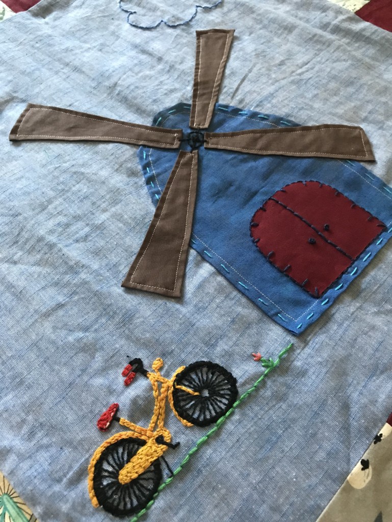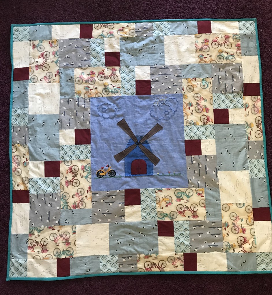 Made this quilt for the baby of a family friend. The father is from the Netherlands and the mother is from the California coast. As much as I knew it was not a super great idea to attempt another double sided quilt, I just had to. I think it’s a wonderful celebration of both cultures all wrapped up in one cozy lap blanket. I have to admit that as someone who has never been to California (but lived in the Netherlands), I spent more time researching and choosing fabrics than I normally do. I even polled several friends who are from there.